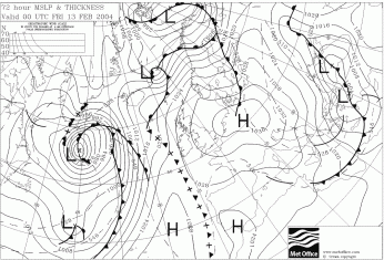 Unwettergefahr Schwarzes Meer, östlicher Mittelmeerraum 12.-14.2.2004 Bodendruckvorhersage: 13.2.04, 0:00 UTC Quelle: www.metoffice.com |