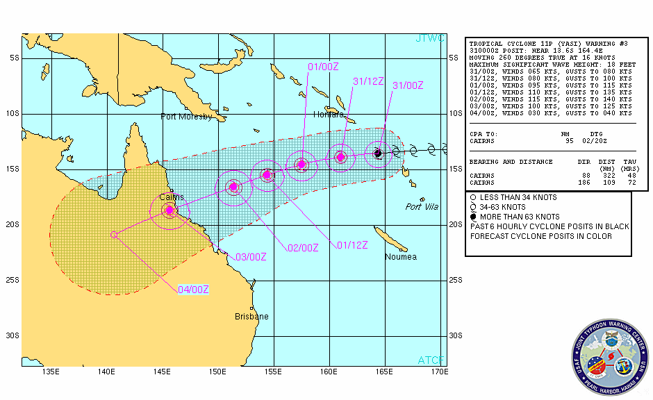 Der tropische Wirbelsturm 11P, "Yasi", befindet sich derzeit mit seinem Zentrum