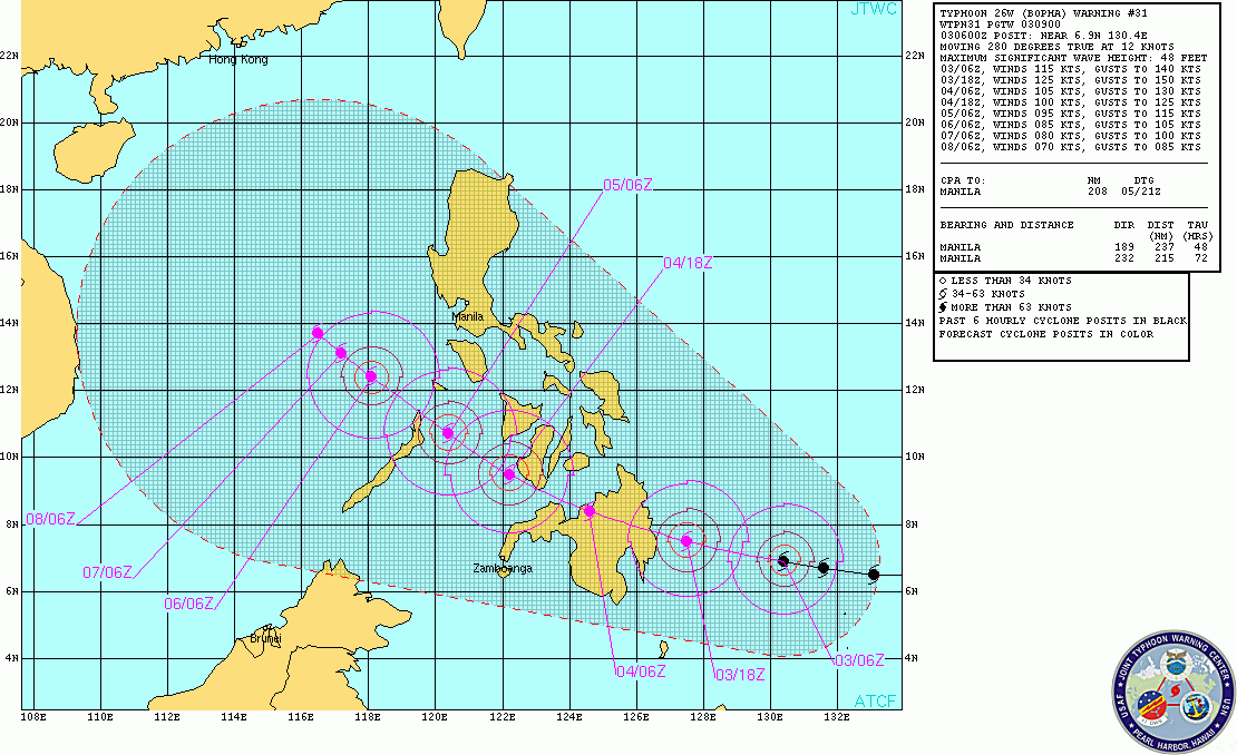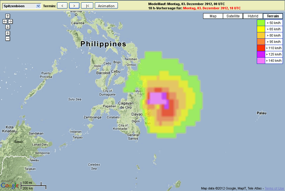 und erreicht in der Nacht 03./04.12.2012 mit kaum veränderter Intensität die Philippinen.