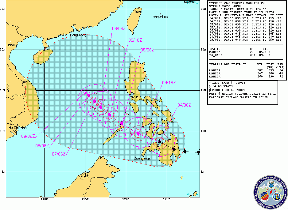 Taifun 26W "Bopha" / "Pablo" - Warnung