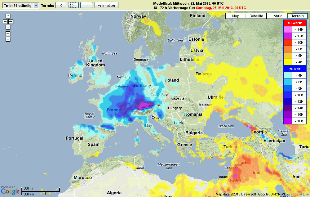 die rund 10 K unter den für Ende Mai üblichen Werten liegen.