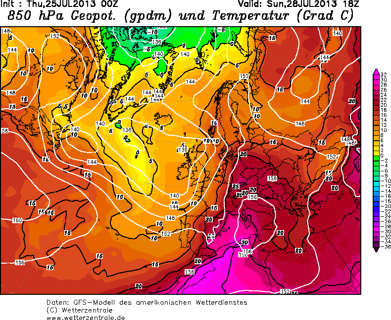 Mitteleuropa werden ab Freitag im 850 hPa-Niveau Temperaturen von