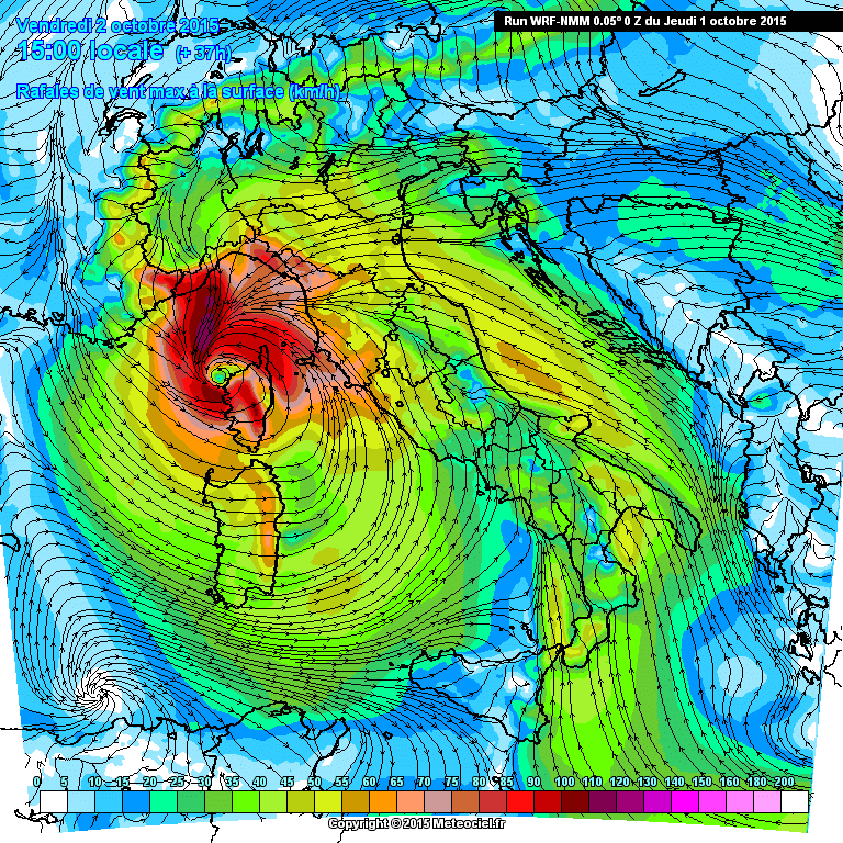 Über das Nordende Korsikas, am Cap Corse, fegten Orkanböen bis 157 km/h hinweg.