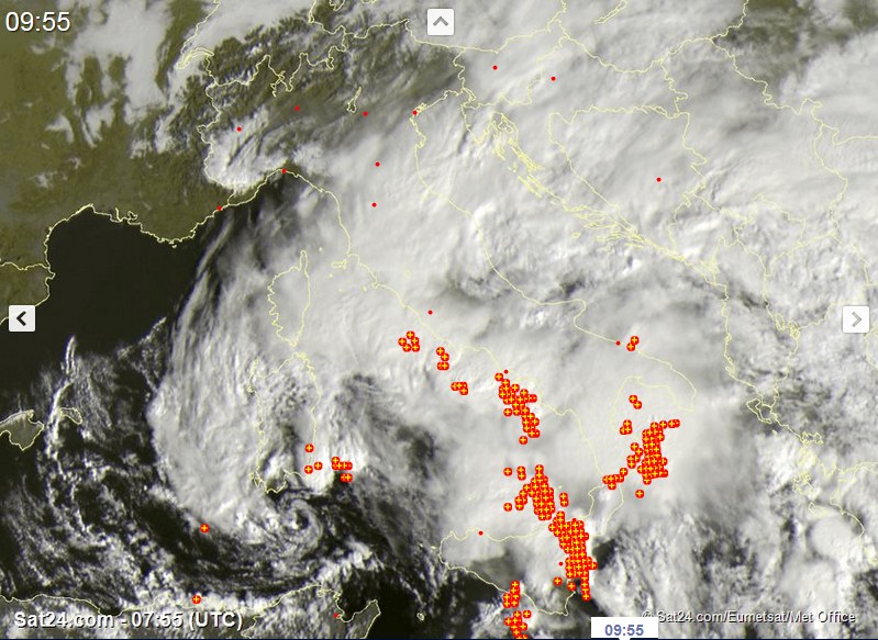 Erste kräftige Gewitterkomplexe erreichen heute und in der Nacht auf Samstag Sardinien und Sizilien.