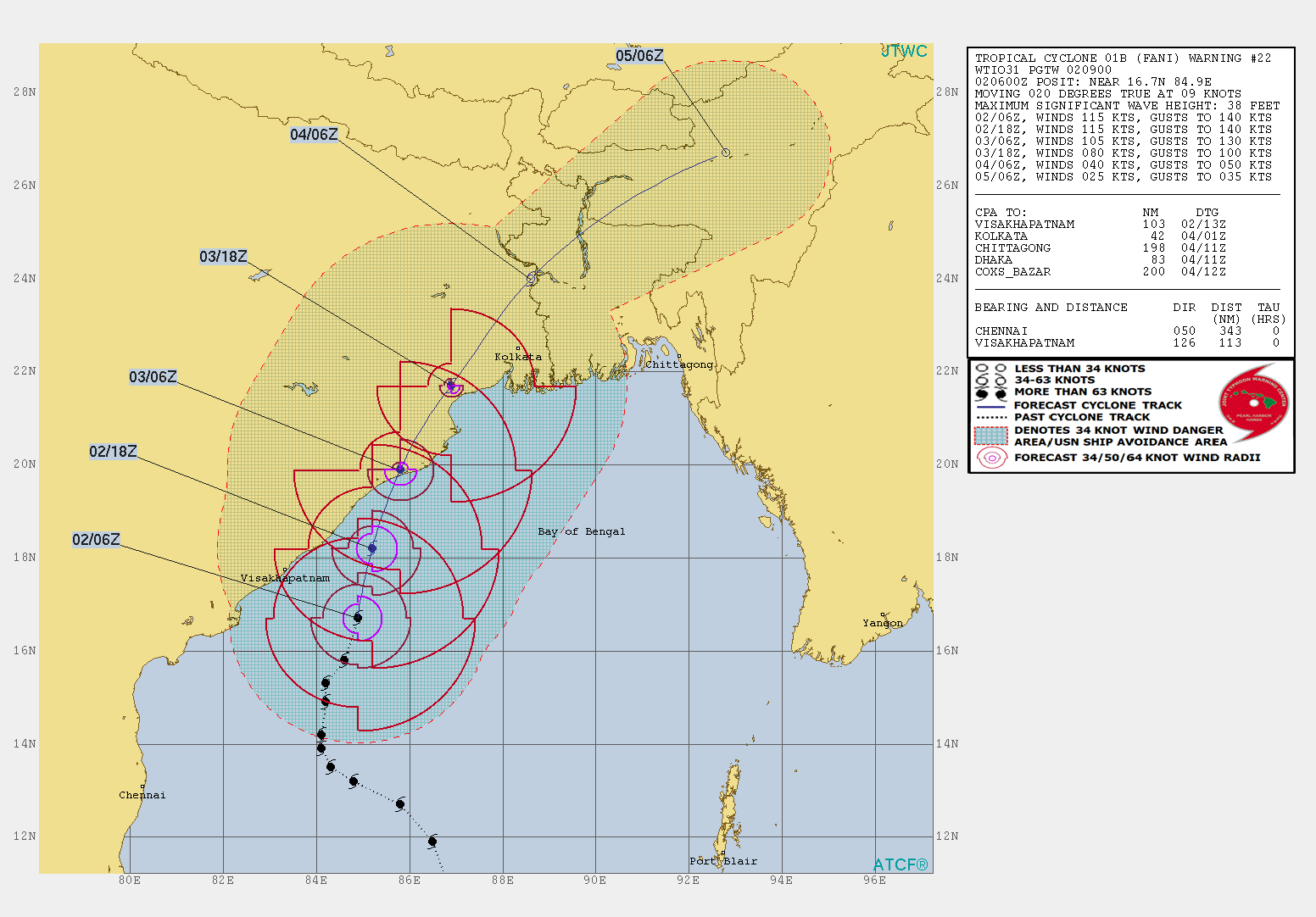 and its mean wind speeds are about 205 kph. FANI will make landfall on Friday 06 UTC as a Category 3 storm about