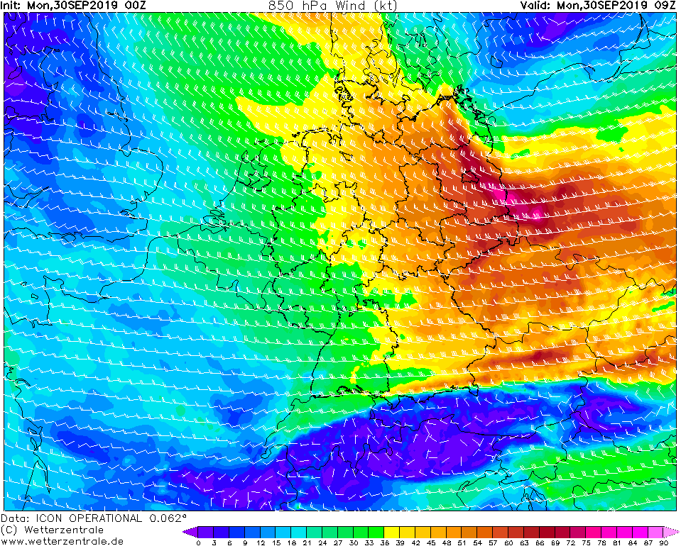 possible. Only in northern Germany the wind remains somewhat weaker at just under 60 kph. According to the latest model calculations, the centre of MORTIMER does