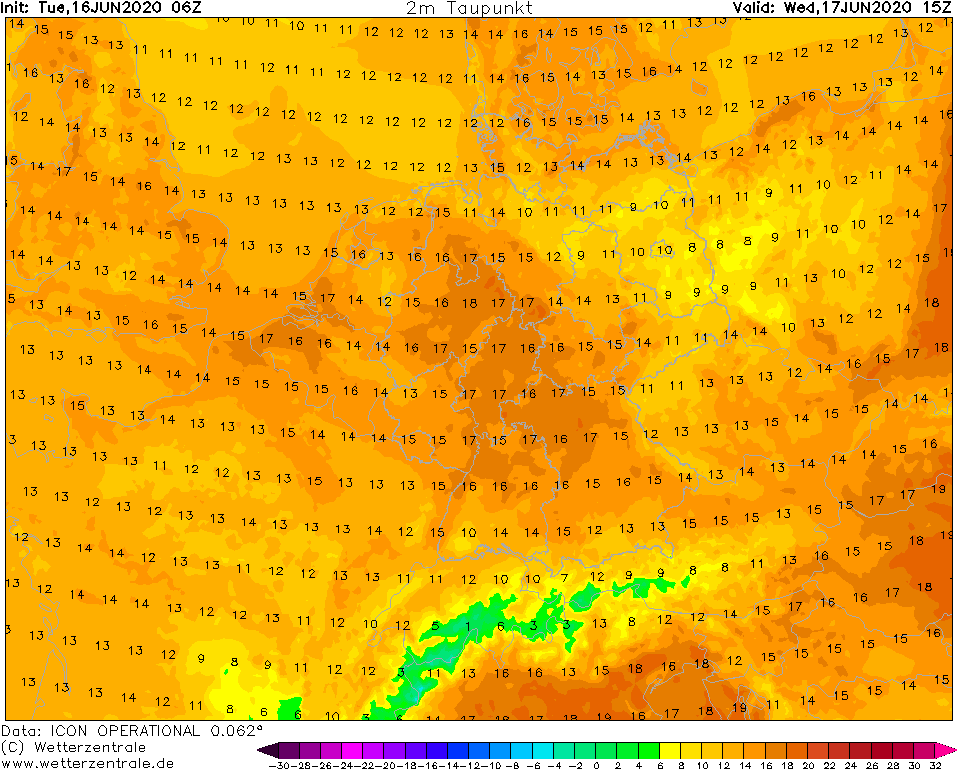 Due to the advection of humid Atlantic air around low pressure system NADINE, the last remaining dry air masses over Germany are being eliminated today. Along a