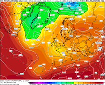 continues to be blocked by the high in the north and the low over France. The air mass will remain very humid with
