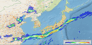 of Japan, but also by the cold air prevailing in the north. This results in precipitation intensities of up to 80 mm/h and daily precipitation