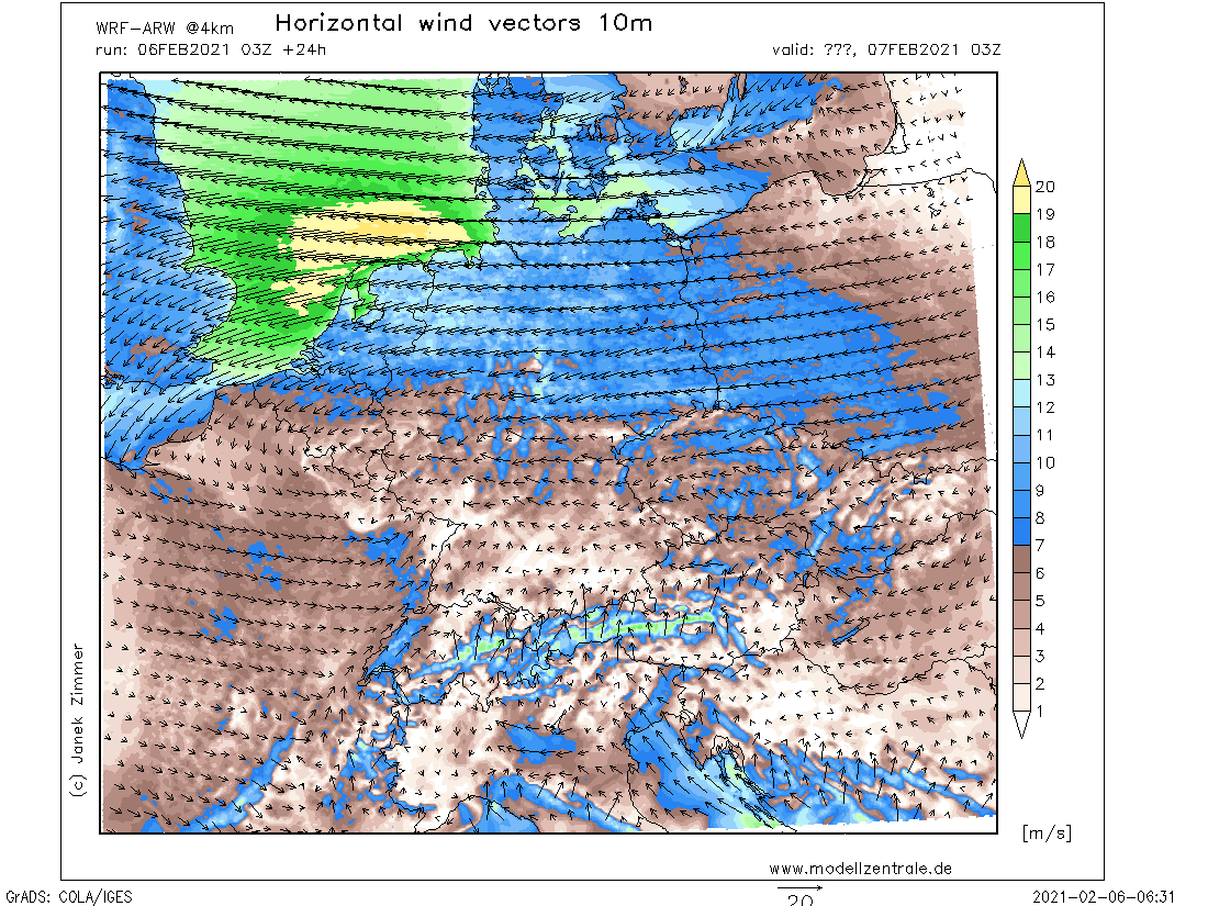 On Sunday morning, the air pressure gradient will also increase, so that in northern Germany, Denmark, and BeNeLux, gusts of around 80 km/h (Bft9) must be expected