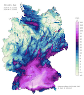 Severe river flooding is expected to occur throughout the weekend in Southern Germany. In the past 24 h, rain accumulations of more than 100 mm were observed. Until Monday morning, further episodes of heavy precipitation are expected to bring another 100 mm of rain.