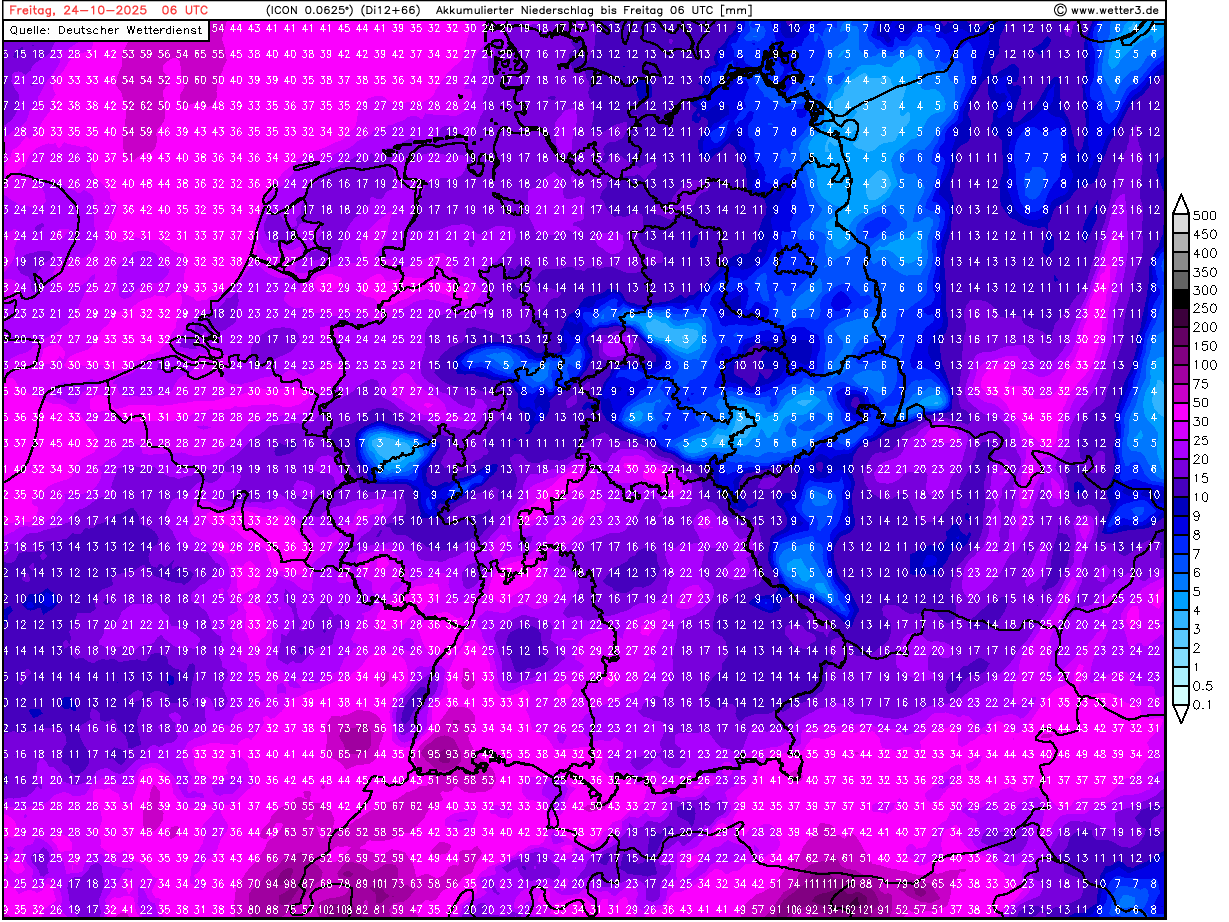 | Accumulated precipitation over Germany, until 24.10 06 UTC