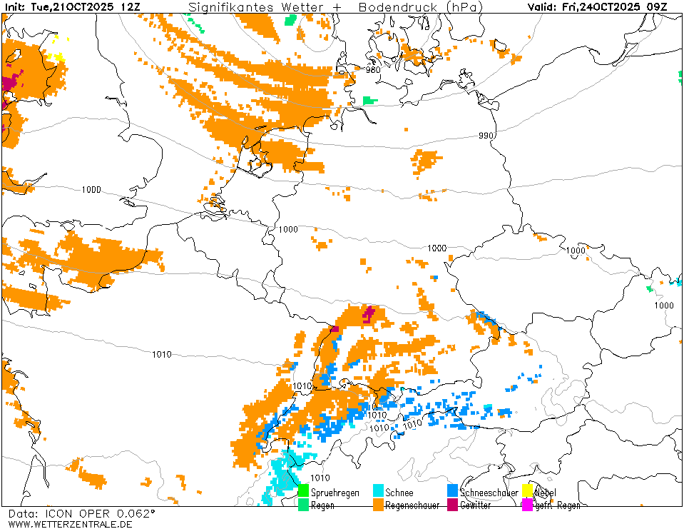 | Significant weather and sea-surface pressure over Central Europe 24.10 09 UTC