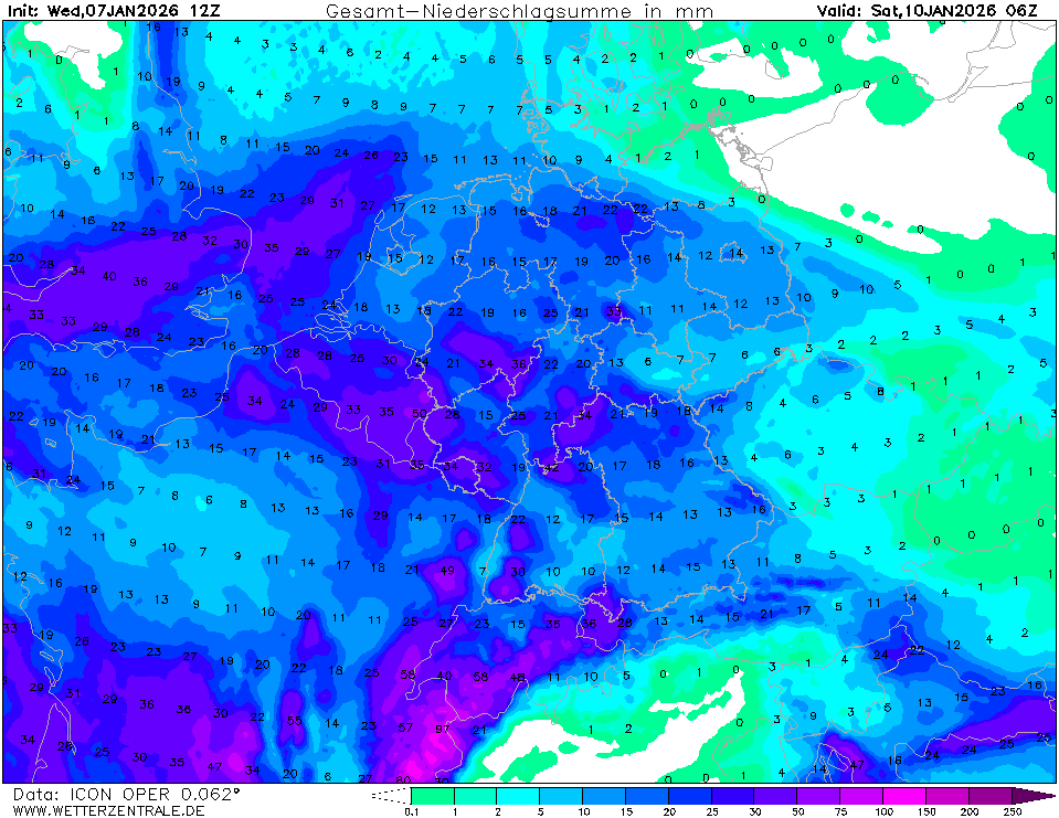 | Accumulated precipitation over Central Europe, until 10.01 06 UTC