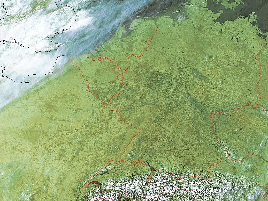 Die Satellitenbilder vom Mittwoch, 17.3.2004, zeigen das gesamte Deutschland, den Alpenraum sowie