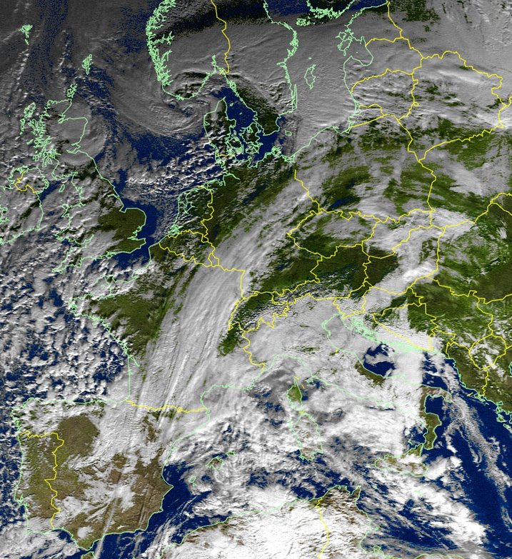 Stürme Deutschland 23.-25.12.2004 Satellitenbild: 25.12.04, 10:35 UTC, NOAA 17 VIS Quelle: M. Wienzek |