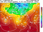 Bodendruck und 500 hPa-Geopotentail vom 6.9.2005 bis zum 9.9.2005,