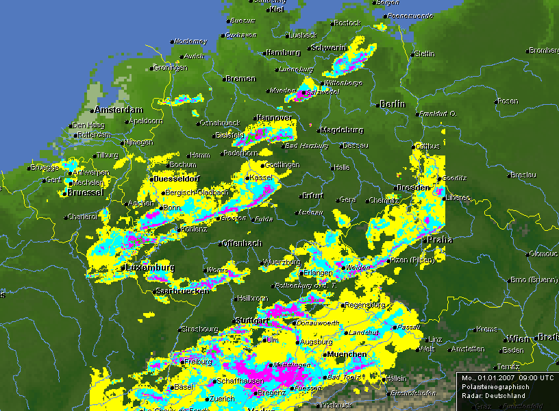 Deutschland in der Nacht zum 01.01. von Nordwest nach Südost.