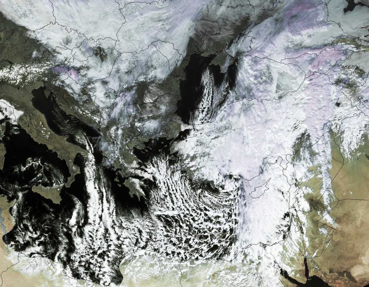 vergleichsweise warmen Meerwasser der Ägäis ein Tief entstehen, das sich bis zum 18. allmählich über die Türkei nach Osten