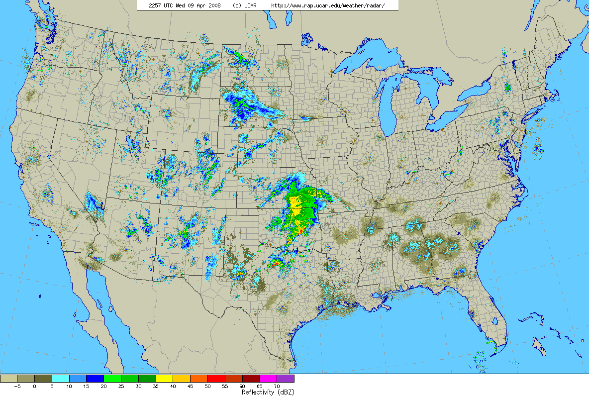 Zum 9. April 2008 stellte sich über Nordamerika eine ebenso typische wie gefährliche Wetterlage ein. Von Nordwesten her