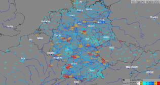 Sturm, Starkniederschlag West-, Mitteleuropa 16.12.2011 Satellitenbild: 16.12.2011, 12:53 UTC, NOAA-19 VIS Quelle: B. J. Burton |