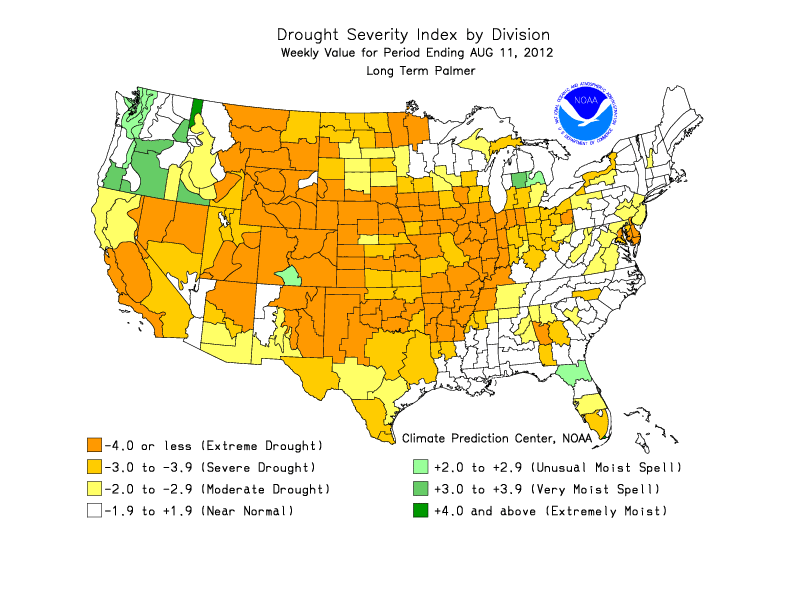 Fünftgrößte Dürre seit dem Jahr 1895 Infolge der Witterung stieg im Juli nach dem Palmer Drought Severity Index der Prozentsatz der mindestens moderat verdorrten Landesfläche auf 57 % an. Dies ist die fünftgrößte Dürre gemäß Archiv, welches bis Anfang des 20. Jahrhunderts reicht. Die Fläche mit extremer Dürre vergrößerte sich von Juni auf Juli um mehr als das Doppelte. Der Bundesstaat Maine durchschritt den fünfttrockensten Juli seit Beginn der Beobachtungen. Nach den 3-monatigen Niederschlagssummen fielen die Monate Mai bis Juli in Nebraska, Kansas und Arkansas rekordtrocken aus. Die letzte große Dürre ereignete sich über 50 Jahre zurückliegend im Dezember 1956.