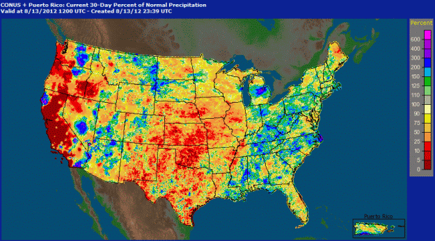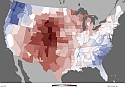 Heißester Juli seit Aufzeichnungsbeginn, Hitzewellen und Hitzejahr 2012 Das Titelbild ganz oben zeigt die aufgezeichnete mittlere Julitemperatur und deren deutlich positive Abweichung von bis zu 8 °F (rund 4.5 °C). Der Bundesstaat Virginia meldete den heißesten Juli seit Beginn der Beobachtungen. In 32 Staaten ist der Juli 2012 unter den Top-10 der heißesten Julimonate. Landesweit gemittelt geht der Juli 2012 als heißester Juli seit Aufzeichungsbeginn im Jahr 1895 in die amerikanische Klimageschichte ein.