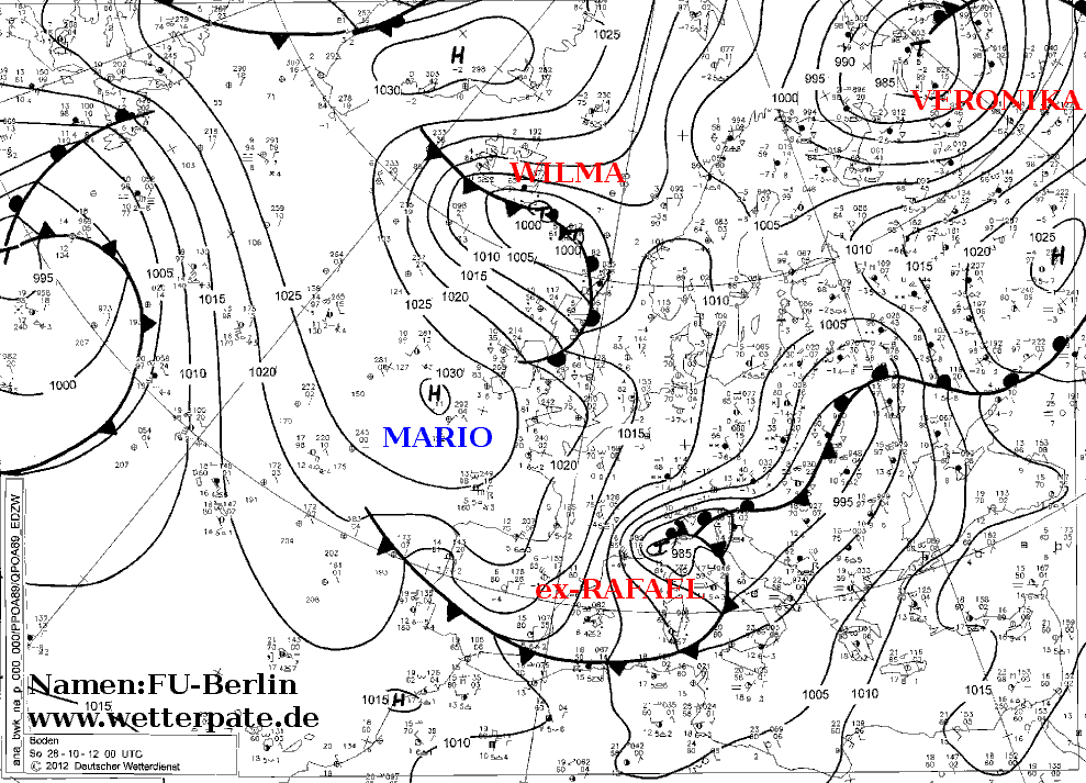 Mit dem Kaltluftvorstoß weitete sich der zu "Ursual" und "Veronika" korrespondierende Höhentrog zunächst kaum nach Süden aus, zumal auf der Vorderseite des zu ex-"Rafael" gehörenden Höhentiefs anfangs großräumig Warmluftadvektion wirksam war. Erst ein markanter Randtrog, der vom Nordmeer über die Nordsee südwärts schwenkte, formte zusammen mit dem südwesteuropäischen Höhentief einen neuen Langwellentrog, der am 27. bis weit in den Norden Afrikas hinein reichte. Aus diesem schnürte sich zum 28. über den Westalpen ein neues, kleinräumiges Höhentief ab, das wesentlich zur Neuorganisation und Intensivierung von ex-"Rafael" beitrug.