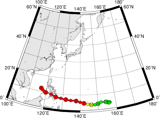 Die größten Regenmengen gingen über dem Osten der Insel Mindanao nieder. Am Flughafen der Millionenstadt Davao wurden 352,6 mm Regen binnen 24 Stunden erfasst. Auch auf den anderen Inseln, ausgenommen vom äußersten Norden der Philippinen, fielen verbreitet 50-100 mm Regen. Insgesamt nahmen die Niederschlagsmengen nach Westen hin ab.