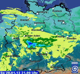 Top 24h-Niederschlagssummen in Deutschland (20.-21.01.2013, 06-06 UTC);
