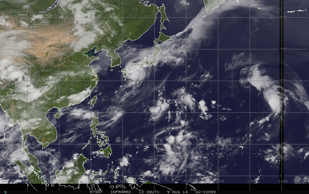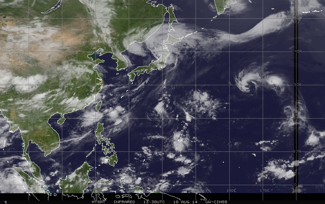 Anfang August 2014 entwickelste sich Taifun "Halong" über dem Pazifik zu einem Supertaifun der Kategorie 5. Unter Abschwächung