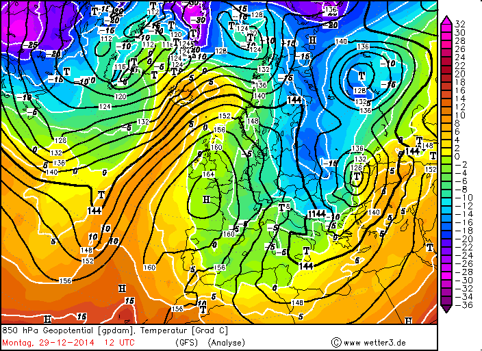 Wetterlage und Entwicklung Vor Weihnachten 2014 herrschte ein überwiegend zonales Strömungsmuster über Europa vor. Zwischen hohem Luftdruck über dem Mittelmeerraum und tiefem Luftdruck über Nordeuropa wurden in breitem Strom milde Luftmassen vom Atlantik auf den Kontinent transportiert. An Weihnachten stellte sich die Wetterlage jedoch grundlegend um. Über dem Nordatlantik baute sich ein mächtiger Höhenrücken auf, dessen Amplitude sich bis nach Grönland erstreckte. Im Gegensatz dazu vergrößerte über dem europäischen Kontinent ein Langwellentrog seine Amplitude bis nach Nordafrika. In der daraus resultierenden nordwestlichen Höhenströmung über Westeuropa entwickelte sich am 26.12. westlich der Britischen Inseln vorderseitig eines eingelagerten Kurzwellentroges Sturmtief "Hiltrud", das sich bis zum 28.12. über das westliche Mitteleuropa und die Alpen hinweg in den zentralen Mittelmeerraum verlagerte. "Hiltrud" brachte am 27.12. über Mitteleuropa bereits vielerorts Sturmböen und Schneefälle mit sich (siehe auch vorangegangener Artikel). Rückseitig von Tief "Hiltrud" flossen ab dem 28.12. kontinentale Kaltluftmassen aus Nordosteuropa auf direktem Weg in den zentralen Mittelmeerraum.