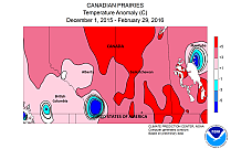 Schon der Winter war in einigen Gebieten Kanadas mit weniger als 75 % des langjährigen Mittelniederschlags erheblich zu trocken. Stellenweise wurden sogar weniger als 50 % erreicht, in der Mitte Manitobas sogar lokal < 25 %. In Alberta fiel der Winter vor allem im Südwesten verbreitet zu trocken aus (60 - 85 % des Mittels), lokal fiel nur 25 - 40 % des langjährigen Winterniederschlags. Niedrige Flusspegel und rekordverdächtig geringe Wasseräquivalente der Schneedecke waren Ausdruck der trocken-warmen Witterung. Beispielsweise am Athabasca River (fließt durch Mc Murray) betrug das Wasseräquivalent der Schneedecke am 1.5. an der Station Marmot-Jasper (1830 m ü. NN) 63 mm. An einem 1.5. werden dort durchschnittlich 219 mm gemessen, d.h. der diesjährige Wert betrug nur 29 % des Mittels und ist der zweitniedrigste der letzten 47 Jahre. Die Station Sunwapta Falls (1400 m ü. NN), ebenfalls am Athabasca River gelegen, maß sogar überhaupt keinen Schnee. 0 mm Wasseräquivalent trat in der 47-jährigen Zeitreihe lediglich noch im Jahr 1980 auf. Das Mittel liegt bei 118 mm.