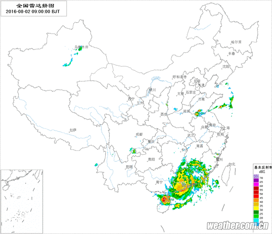 bzw. 80 kt (148 km/h, 1-min-Mittel) und einem minimalen Kerndruck von 970 hPa über dem südchinesischen Meer Kurs auf die chinesische Südostküste.