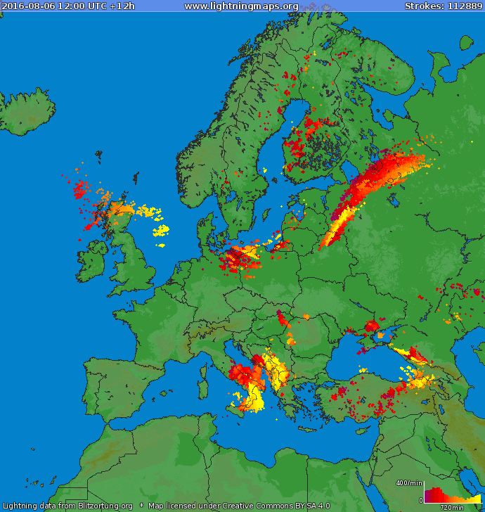 Am Abend des 06.08. sorgte ein kräftiges Gewitter in Skopje (Mazedonien) für extreme Überschwemmungen und Erdrutsche. Dabei kamen innerhalb von kurzer Zeit über 90 mm Regen zusammen. In der mazdeonischen Hauptstadt wurden Straßen und Häuser überschwemmt, Autos weggespült. Betroffen waren vor allem die Gebiete am Stadtrand von Skopje. Mindestens 21 Menschen kamen durch die Wassermassen ums Leben, mehrere Hundert trugen Verletzungen davon.