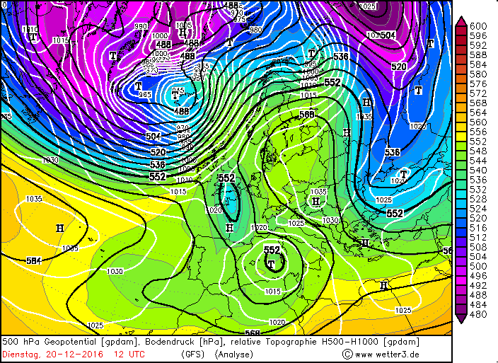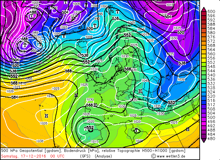Wetterlage und Entwicklung Der Dezember 2016 wurde in weiten Teilen von Mittel- und Westeuropa durch ein kräftiges Hochdruckgebiet geprägt. Tiefdruckgebiete vom Atlantik wurden in der Regel nach Nordeuropa gelenkt. Einige Kurzwellentröge kamen auch in den westlichen Mittelmeerraum voran. So brachte ein Tief Anfang Dezember der Südküste Spaniens (Costa del Sol) heftige Regenfälle, die zu Überschwemmungen führten (z.B. in Malaga). Rückseitig eines Tiefdruckgebiets, welches am 13. und 14.12. quer über den Atlantik zog, kamen Luftmassen polarem Ursprungs weit nach Süden bis vor die Küste Portugals voran. In der Höhe spaltete sich am 16.12. über dem Südwesten Spaniens ein Tief ab, das sich anschließend nach Marokko verlagerte. Zwischen dem Tief über Nordafrika und Hoch "Wolfgang" über Mitteleuropa vergrößerte sich in der Folge der Druckgradient. An der Lage des Höhentiefs änderte sich am 17. und 18.12. nur wenig. Über dem Südosten Spaniens wurde die mit der östlichen Strömung vom Mittelmeer an die Küste transportierte feuchtwarme Luftmasse gehoben (Advektion positiver Vorticity). Konvektiv verstärkte Regenfälle traten über mehrere Stunden hinweg in denselben Regionen zwischen Malaga und Valencia auf.