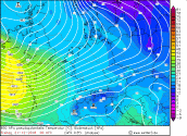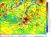 Sea Level Pressure Europe, 500-hPa-Geopotentialand Sea Level Pressure, 850 hPa pseudopot. Temperature, Windmaxima,Temperaturadvection, Temperature |