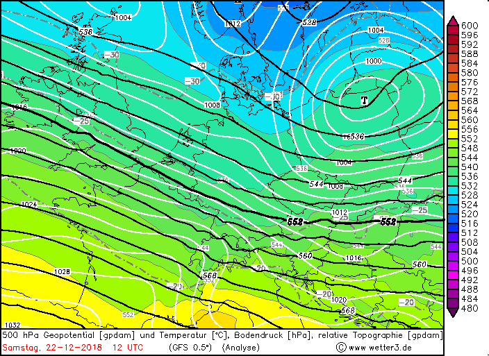 over the northeast of Canada / Newfoundland. It is only recognizable in the ground pressure maps and in the relative topography.