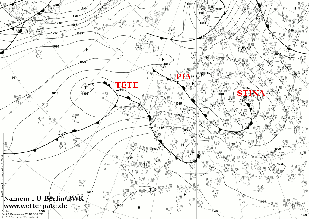 In the night on December 23rd TETE was listed for the first time. It was located west of Ireland on the Atlantic and was a marginal low of a further west lying low