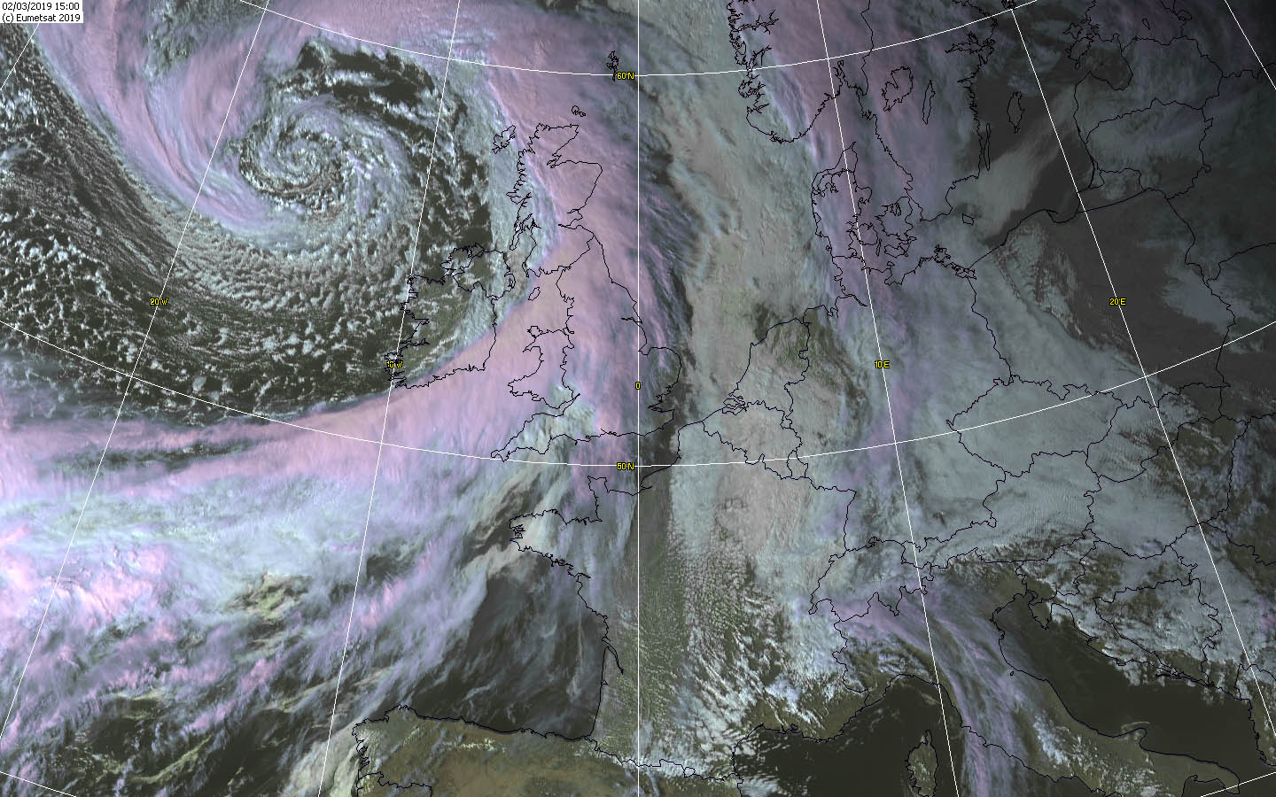 moved on. Stored in a longwave trough it lingered until the 7th of March over Irland and the United Kingdom. Its core pressure was 975 hPa and it shifted only slowly.