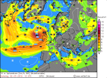As soon as BENNET left Europe Winterstrom CORNELIUS reach Europe. With a central pressure of 978 hPa the low moved over the UK in the evening of March 05. Remarkable was its