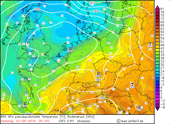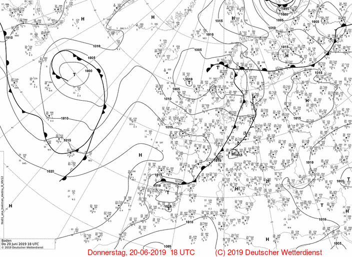 thunderstorms. The cold front never reached the south. Also on the following days up to and including 22 June there were heat thunderstorms at noon.