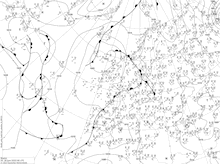 By 16 UTC, the nearing trough provided enough forcing for convection to be triggered over the northern part of the Alps. The cells found a very favorable environment for further development in the Alpine foothills and the Danube Valley with CAPE values of more than 2000 J/kg. Over Bavaria, the thunderstorms brought locally large hail stones as well as very strong convective downdrafts. While moving quickly northeastwards into the northern part of Bavaria, the shear increased, as here the surface low induced more southeasterly winds superposed by the mid-level southwesterlies induced by the upper-level trough. By 20 UTC, multiple supercells formed across the northern part of Bavaria bringing torrential downpours, with more than 120 mm of rain falling in a short period at Bad Berneck. In the nighttime hours, the supercells moved into Saxony, dissolving into a broad area heavy convective precipitation.