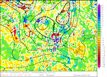 When analyzing the latter stages of development of storm Poly, the storm's structure once again is special. Like a Shapiro-Keyser cyclone, the storm most likely developed a warm seclusion in the cyclone center, leading to these distinct precipitation bands around the cyclone center. One might argue here that these bands have a similar structure to a warm core tropical cyclone, e.g., comparing it to subtropical storm Ana in 2021, which makes this storm even more special. A warm core can only be achieved by warm ocean waters which lead to a large energy release via latent heating. In this case, the latent heating might have played a significant role in the development of storm Poly, as the North Sea is much warmer than usual with water temperatures of more than 15 °C. Though, this is much too cool for a tropical cyclone, but also more than 10 °C warmer than in the winter months, which should amplify the role of latent heating during the cyclone development.