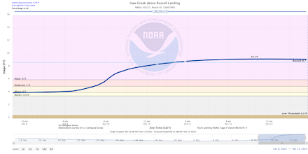 Extreme river flooding following the passage of Hurricane MILTON across the central part of the Floridian Peninsula observed at Anclote River near Elfers, FL (upper left), Hillsborough River near Zephyrhills, FL (upper right), Alafia River at Lithia, FL (lower left), and Haw Creek above Russell Landing, FL (lower right):