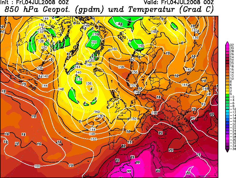 850 hPa-Geopotential und -Temperatur | Quelle: Wetterzentrale